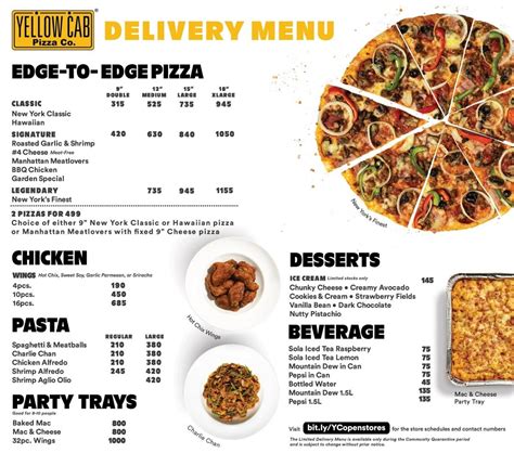 If you're looking for a pizza place that offers a wide variety of flavors and toppings, you might want to consider Yellow Cab Pizza. Originally from the Philippines, this popular pizza chain has expanded its reach across Southeast Asia and the United States. With a menu that caters to both meat lovers and vegetarians, Yellow Cab Pizza is sure to satisfy everyone's cravings. In this article, we'll take a closer look at some of the must-try items on their menu.